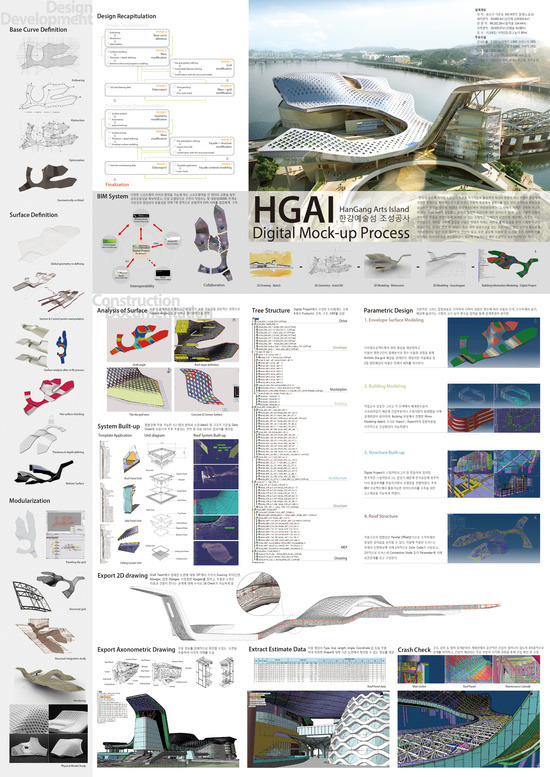 그 후로는 운좋게, 실무 첫번째 프로젝트에서 BIM툴을 사용했다. 그것도 무려, 카티아 기반의 Digital Project. 프랑크게리가 만들었다는 그 프로그램이다. 날아가는 디자인을 풀기위해, 회사에서 이미 선택한 툴이었고, 신입사원이었던 나는 팀장님 지휘하에...사용법을 익혔고, 어느정도 익숙해질 무렵까지...점을 찍었다. 아마 수만개의 점을 찍었던 것 같다. 그 몇개월의 노고를 BIM 어워드 대상으로 보상받았으나, 여러 이유로 이 프로젝트가 실현되지 않은 것이 참 아쉽기도 하다. DDP의 형상을 이프로그램을 통해, 실시설계로 풀었으니, 이 툴의 훌륭함은 이미 증명된 것 같다. 하지만, 개인이 쓰기에는 매우 비싸고, 다소 어렵다. 내가 두배정도 똑똑하면, 쓸만한 프로그램 같다. 난 박스형 디자인도 아직 너무 어렵다.
